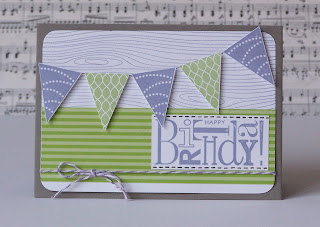 Die zweite Karte ging von zwei Dingen aus - das erste war das Stempelset, ich wollte gerne noch mal die Vögel von Paper Smooches verwenden. Und dann hab ich mich von den Farben her an dem Papier orientiert - plus grün...